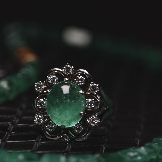 Particularités : Charmant caractère vintage (légères traces d'usure sur l'émeraude)